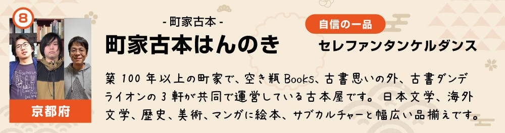 ⑧町家古本はんのき 京都市上京区鳳瑞町225 TEL075-205-3286