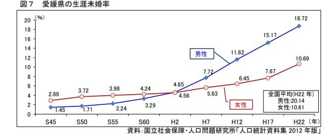 そのことから今回、愛媛県の未婚化を調べてみると、未婚率がどんどん上昇している現実を知りました。