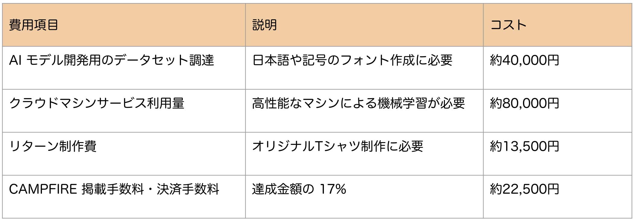 今回のプロジェクトで集まった支援金については、これらの用途に充てたいと考えています。
