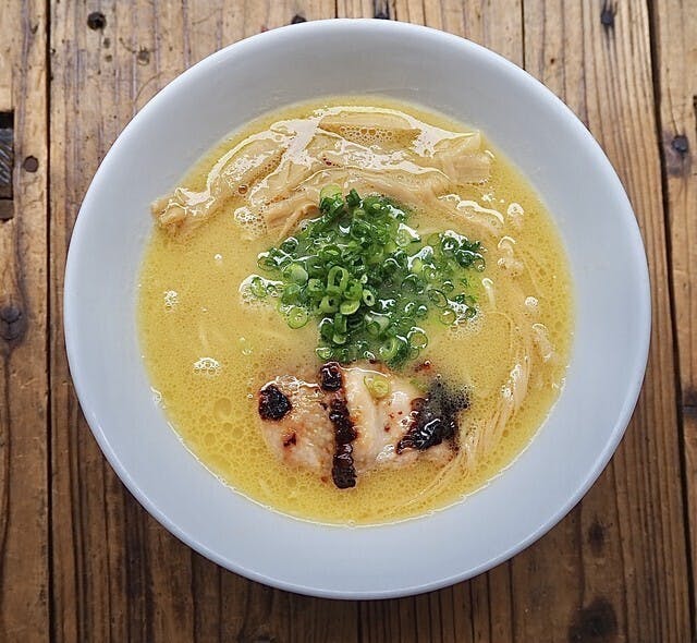 鶏ポタラーメンとは、鶏と10種類の野菜*で作るポタージュスープを使ったラーメン。化学調味料に頼らず、材料をたっぷりと使い旨味を作りだしているから、濃厚なのにさっぱりとした味わいが特徴です。また、世界中の人が宗教による制約なく食べられるラーメンです。