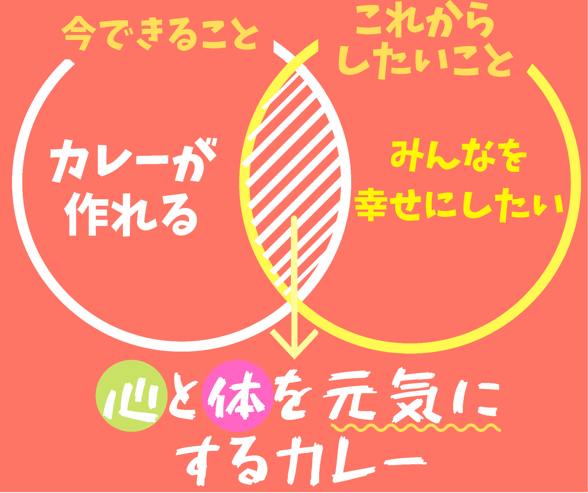 以上、2つのカレーで食べてくれた人やまったく知らない人達を元気にして、幸せを届けられればいいなっておもってます!宜しくお願いします。