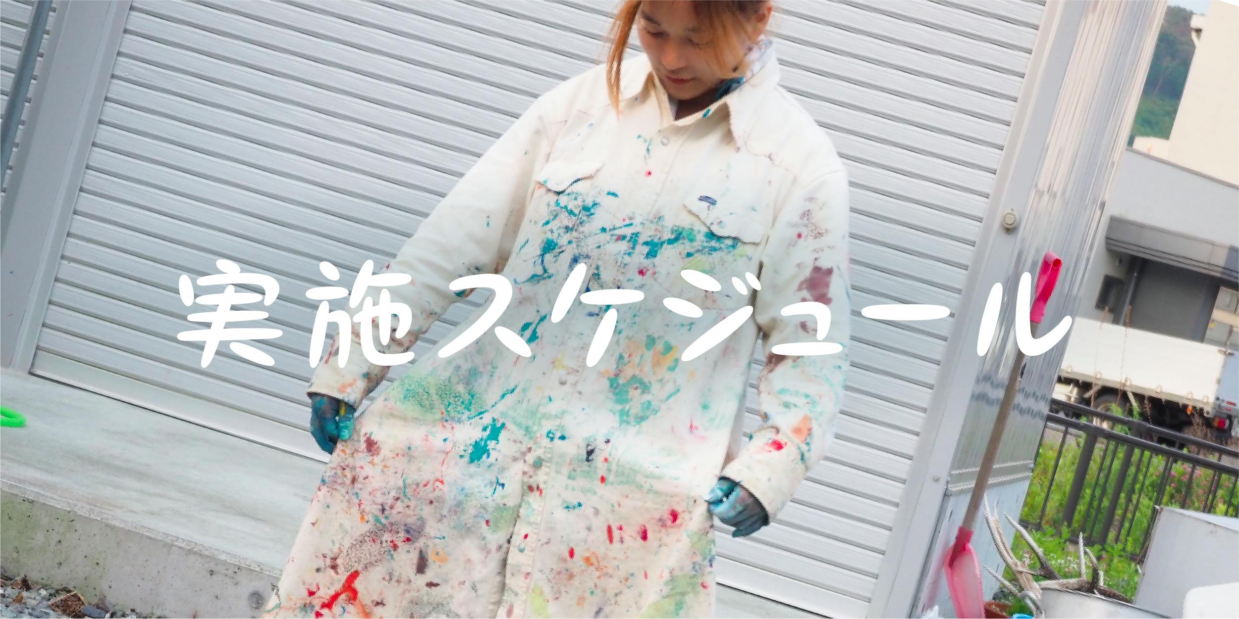 各地で産まれた廃材を画材に変えて絵を描きます。 作品発表時は、