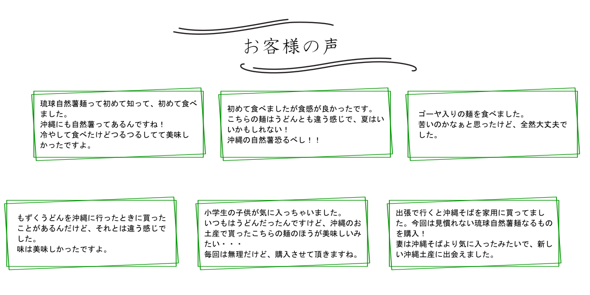 琉球自然薯麺は国産の小麦粉と沖縄県産のクーガ芋を主原料に、沖縄で製麺しております。