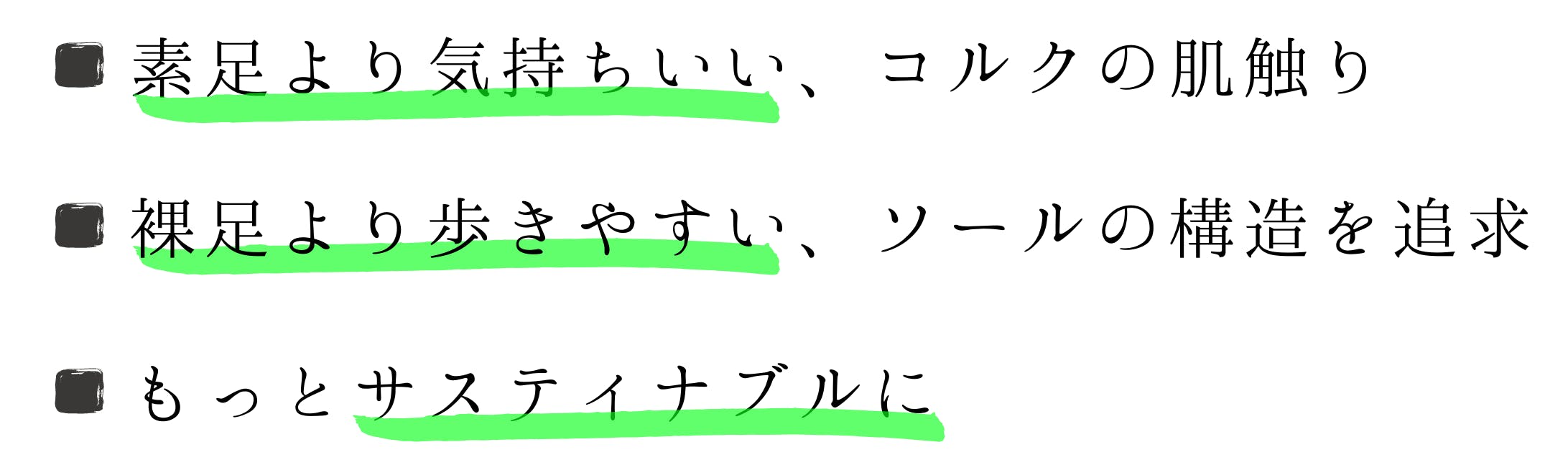 私たちがコルクのサンダルにこだわるのは、肌触りがいいのはもちろんですが、5つのメリットがあるからです。