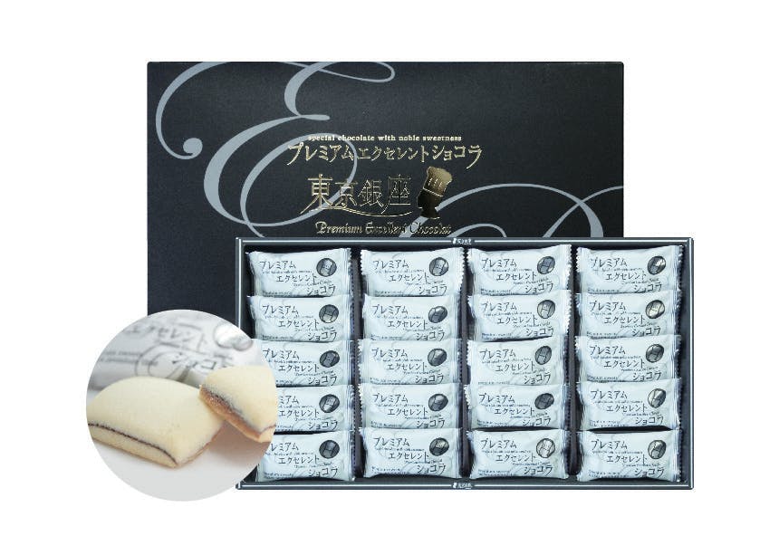チョコレート(ココアバター、砂糖、全粉乳、その他)(国内製造)、小麦粉、卵白(卵を含む)、砂糖、マーガリン、ショートニング、レモン果汁、乳等を主要原料とする食品、食塩/香料、乳化剤(大豆由来)、酸化防止剤(V.E)、着色料(カロチン)