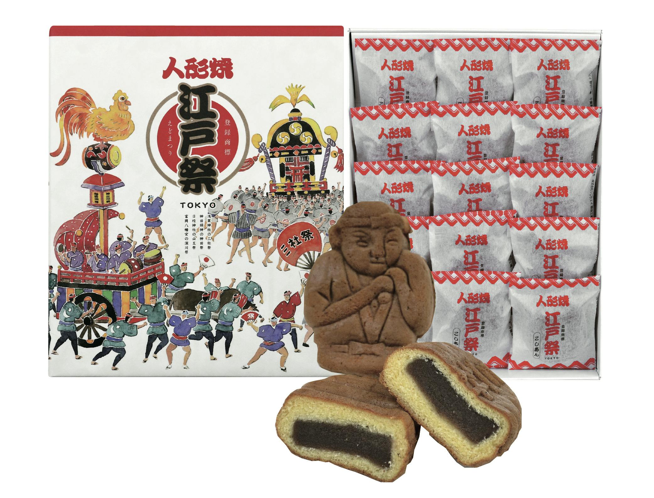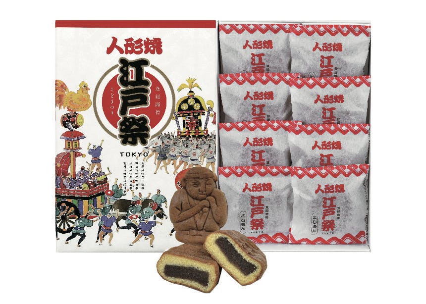 東京土産の大定番「江戸祭人形焼」のこしあんの商品です。 専用に作られた、なめらかなこしあんを包みました。