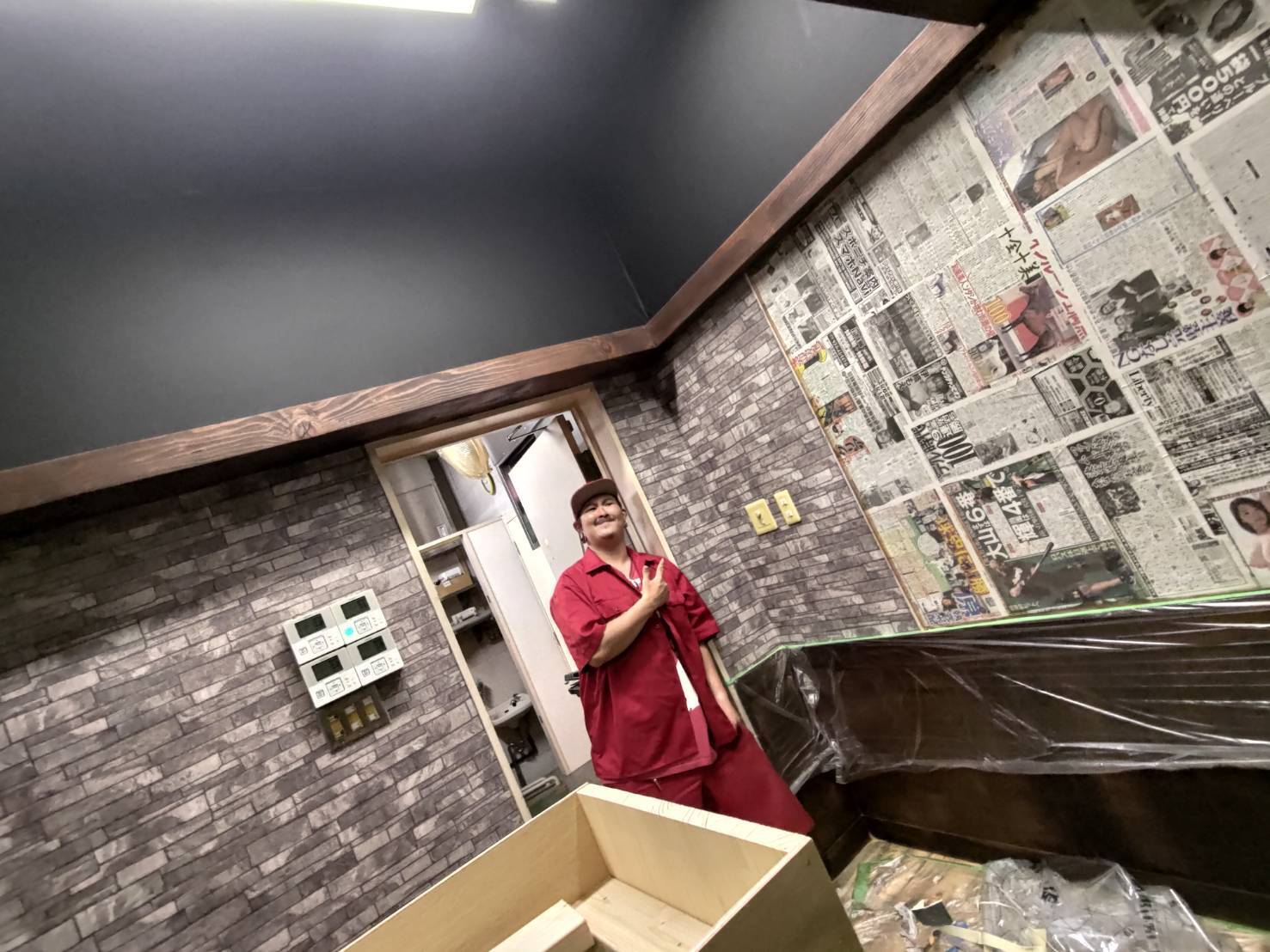 2021/06/22 03:04とうとう壁紙のクロス貼りのクロス貼りまできました。木部を境目に上は黒、下はレンガに仕上げています。これだけでかなり雰囲気が変わってきましたね!バーカウンターもいい雰囲気になりそう!そして本日はさくらFM cafe@さくら通り で当プロジェクトを取り上げて頂きました!本当にありがとうございます。当プロジェクトも残すところ4日。全身全霊で駆け抜けたいと思います! もっと見る