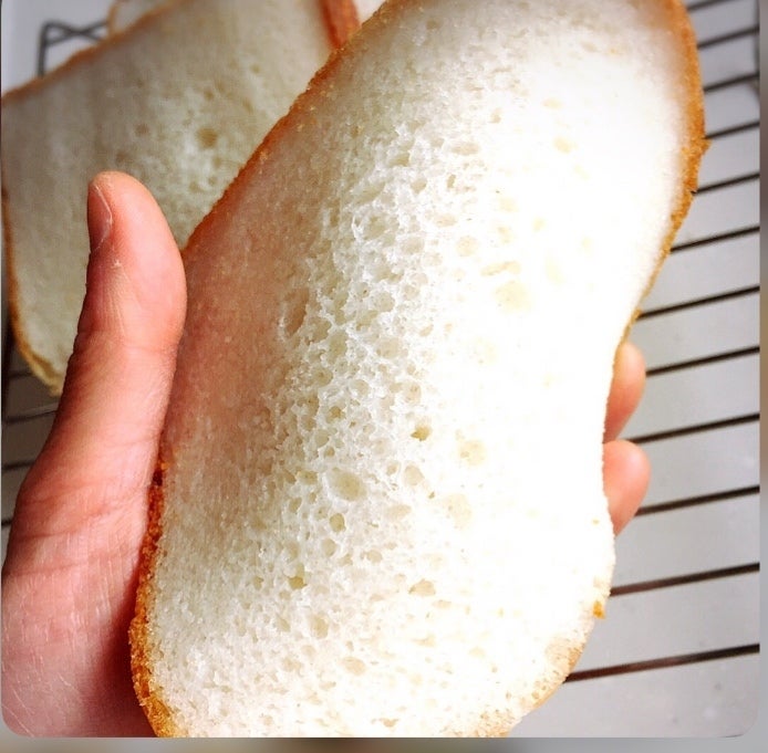 ちなみに上記で載せていた7大アレルゲン不使用のスポンジ、28品目不使用のパン(どちらも添加物不使用)は現時点で下の写真(断面写真です)レベルまでにはなりました^_^