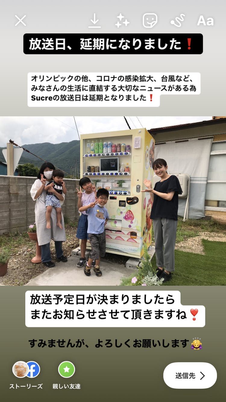 テレビ放送、延期になりました…。
