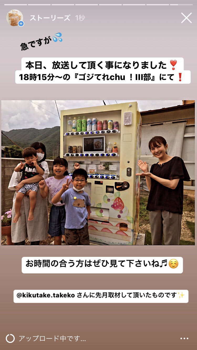 2021/09/03 19:57ご支援頂き、本当にどうもありがとうございましたm(_ _)mおかげさまで町民のお客様はじめ、周囲の方々に自販機の存在に知って頂けるようになりました♬ご支援して下さった方も遠方からお越し頂いたりと本当に嬉しい限りです♡どうもありがとうございます‼︎題名にあります、リターン品の発送についてですが、まだ発送していないご支援者様へも順次発送や発送準備をさせて頂いています。まだお届け出来ていないご支援様、お待たせして申し訳ございませんが、お届けまでもうしばらくお待ち下さいませm(_ _)m(今月中には全てのご支援者様へのお届け完了予定です。)よろしくお願いしますm(_ _)mまた、メディアで取り上げて頂いた事についてはまたお知らせさせて頂きたいと思います!(これから放送予定のものもありますので、近くなったらご連絡させて頂きます。) もっと見る