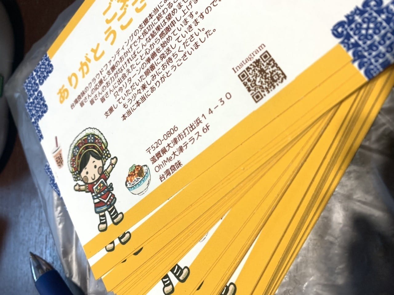 2021/11/09 11:08知り合いから届きましたの声が来ましたが、皆さまのお手元にも届きましたでしょうか?このハガキの子は台湾の原住民の子です。かわいいですよね。デザインはお店の雰囲気にしているので、来ていただくと納得だと思います!リターンは第一弾の方々に発送しました。恐らく十五弾くらいになると思いますのでお待たせしてしまいますが、支援順に発送しますので、届くまでしばらくお待ちください。 もっと見る