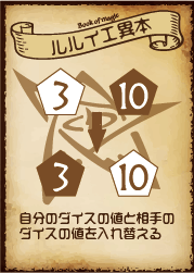 魔導書はダイスの値を操作することができるカードです。主に自分のダイスの値を操作するのに使いますが、他の人のダイスの値を操作することもできます。