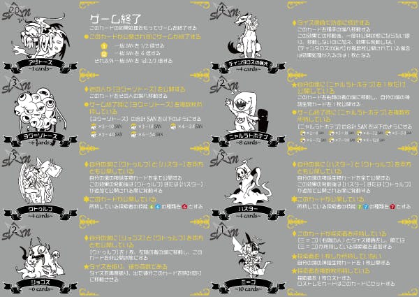 【ニャルラトホテプ】、【ヨグ=ソトース】を複数枚所持している場合はSAN(ポイント)が変動します。