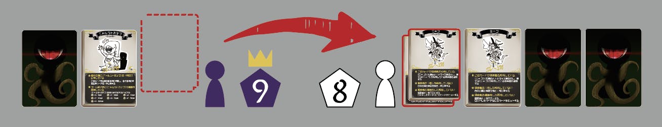 自分が追加した神話生物カードが何かは分かりますが、他の人が追加したカードが何なのかは分かりません!