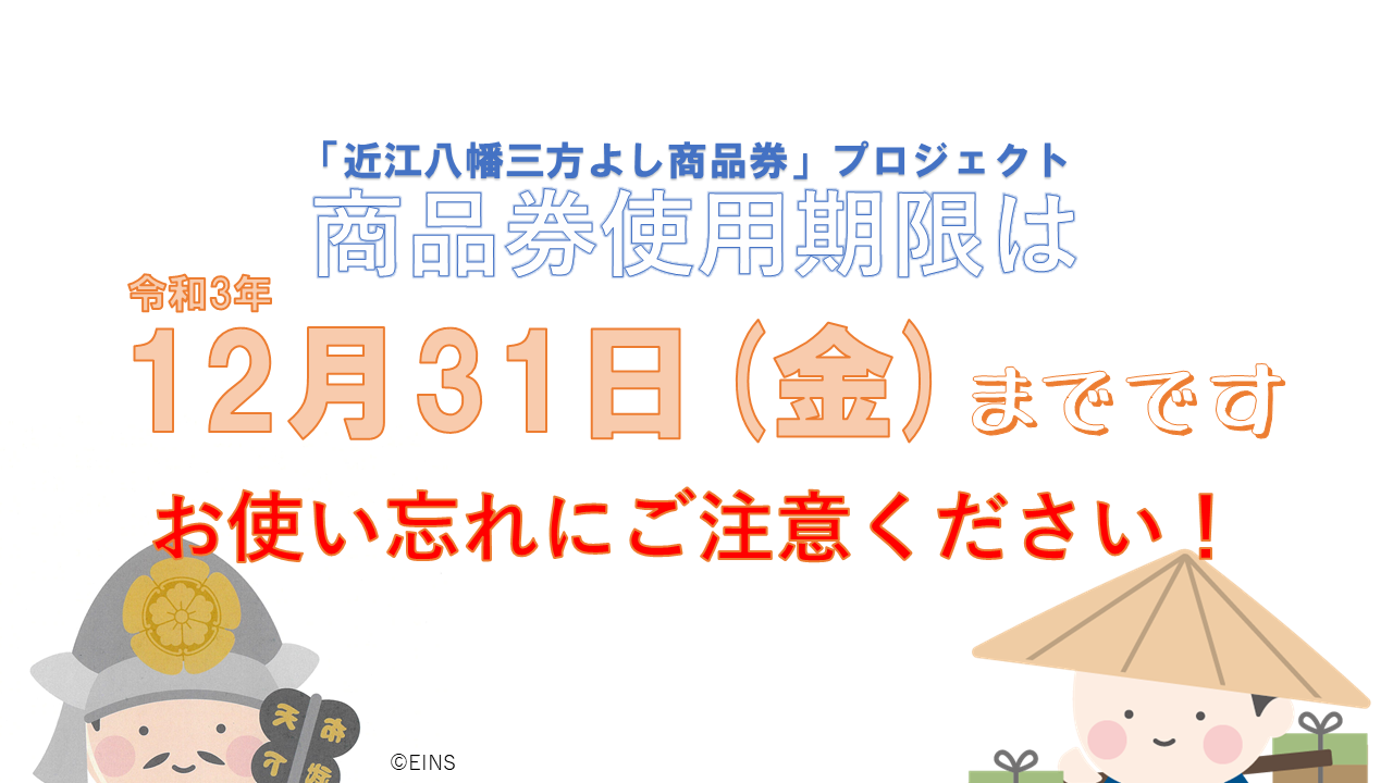 ※近江八幡三方よし商品券の有効期限は、2021年12月31日(金)までとなります。