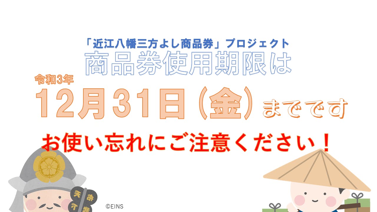 ※近江八幡三方よし商品券の有効期限は、2021年12月31日(金)までとなります。