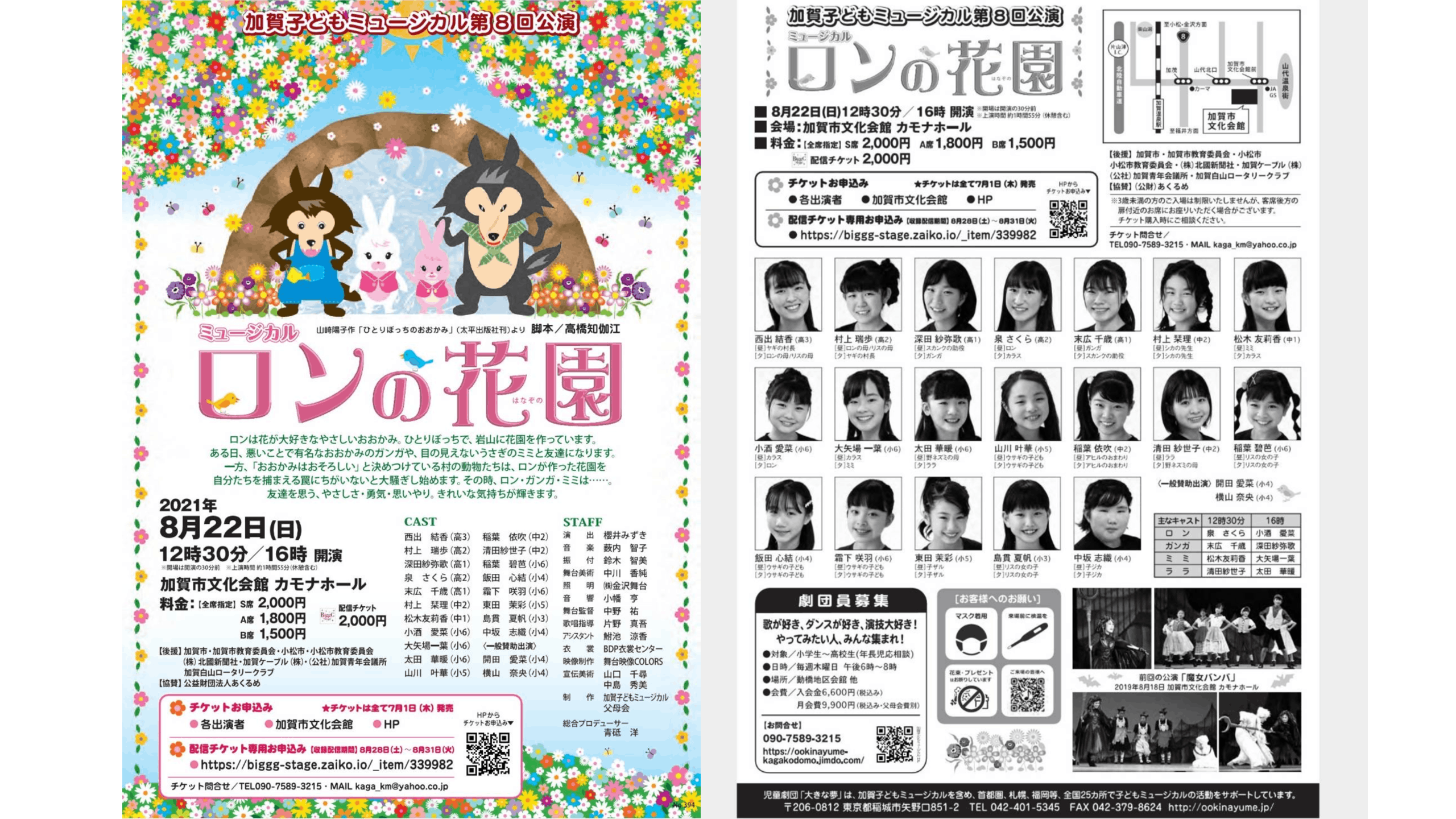 ・8/22 公演 加賀子どもミュージカル「ロンの花園」 配信チケット