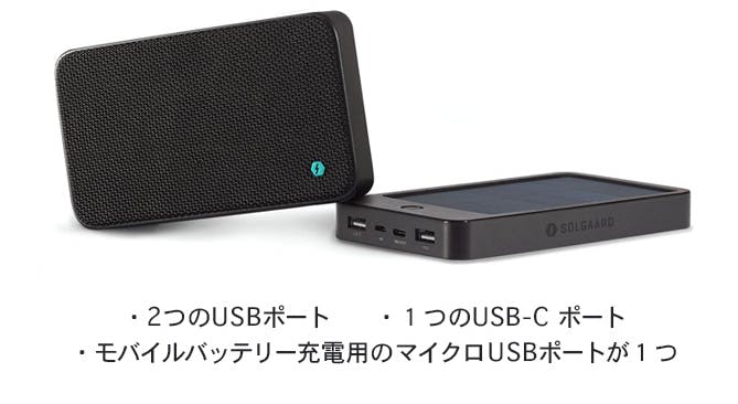 USB出力ポート×2とUSB-C出力ポート×1(5V=3A)、マイクロUSB入力ポート×1(5V=1A)