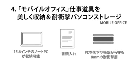 ・太陽の光で充電可能、PC持ち運びに最適なモバイルオフィスとして