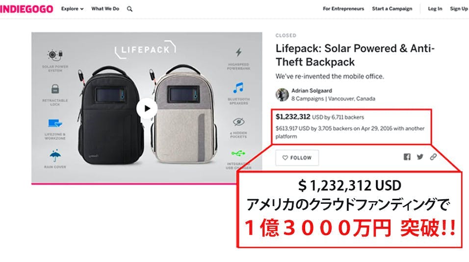 LIFEPACKはアメリカのクラウドファンディング史上バッグカテゴリでTOP5に入る記録的な大人気を獲得、世界中の人が「こんな商品が欲しかった!」と支援したことにより製品化されました。