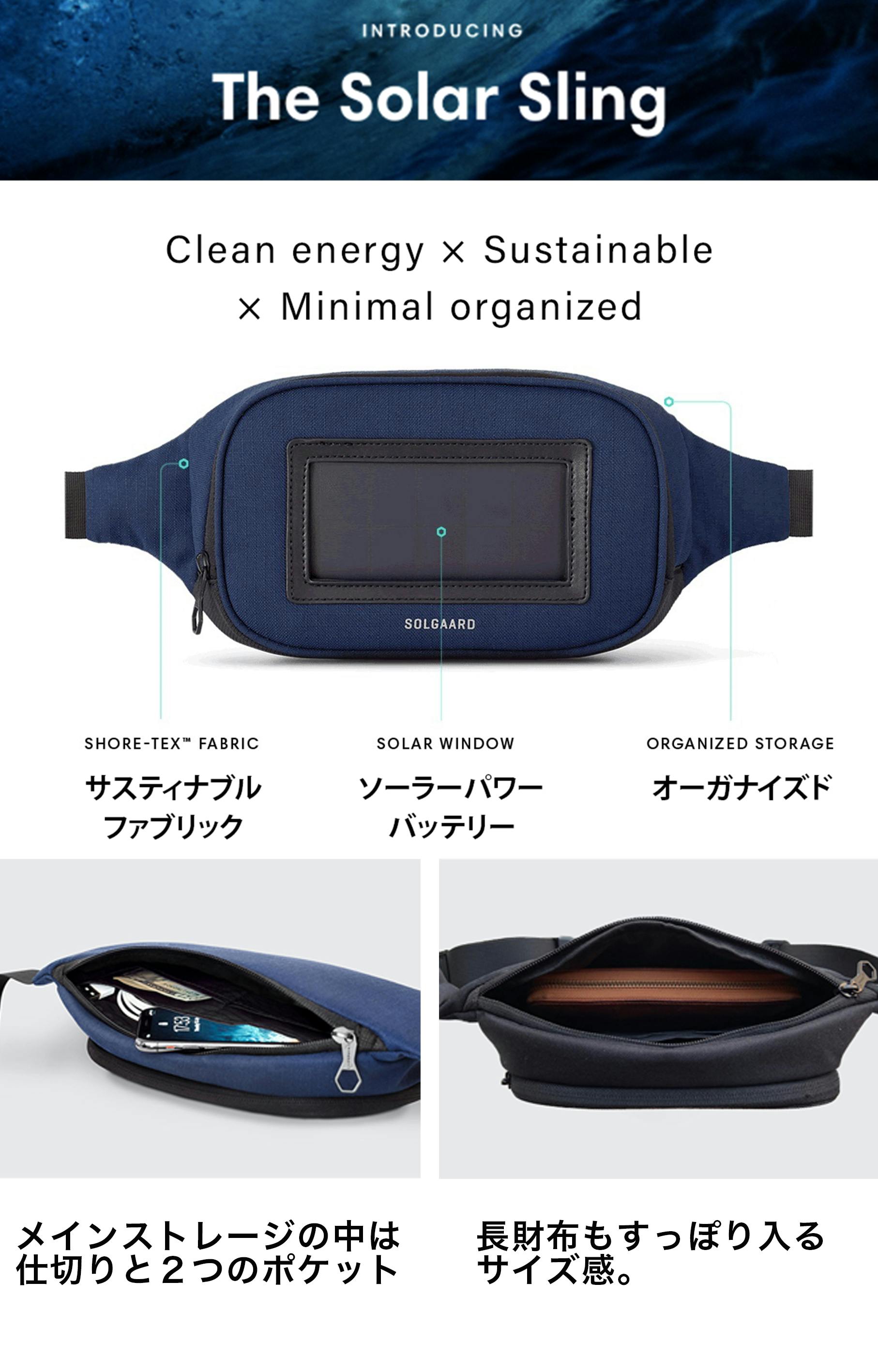 そして、少しの必需品だけ持って身軽に出かけたい時には、Solar Slingがピッタリ。