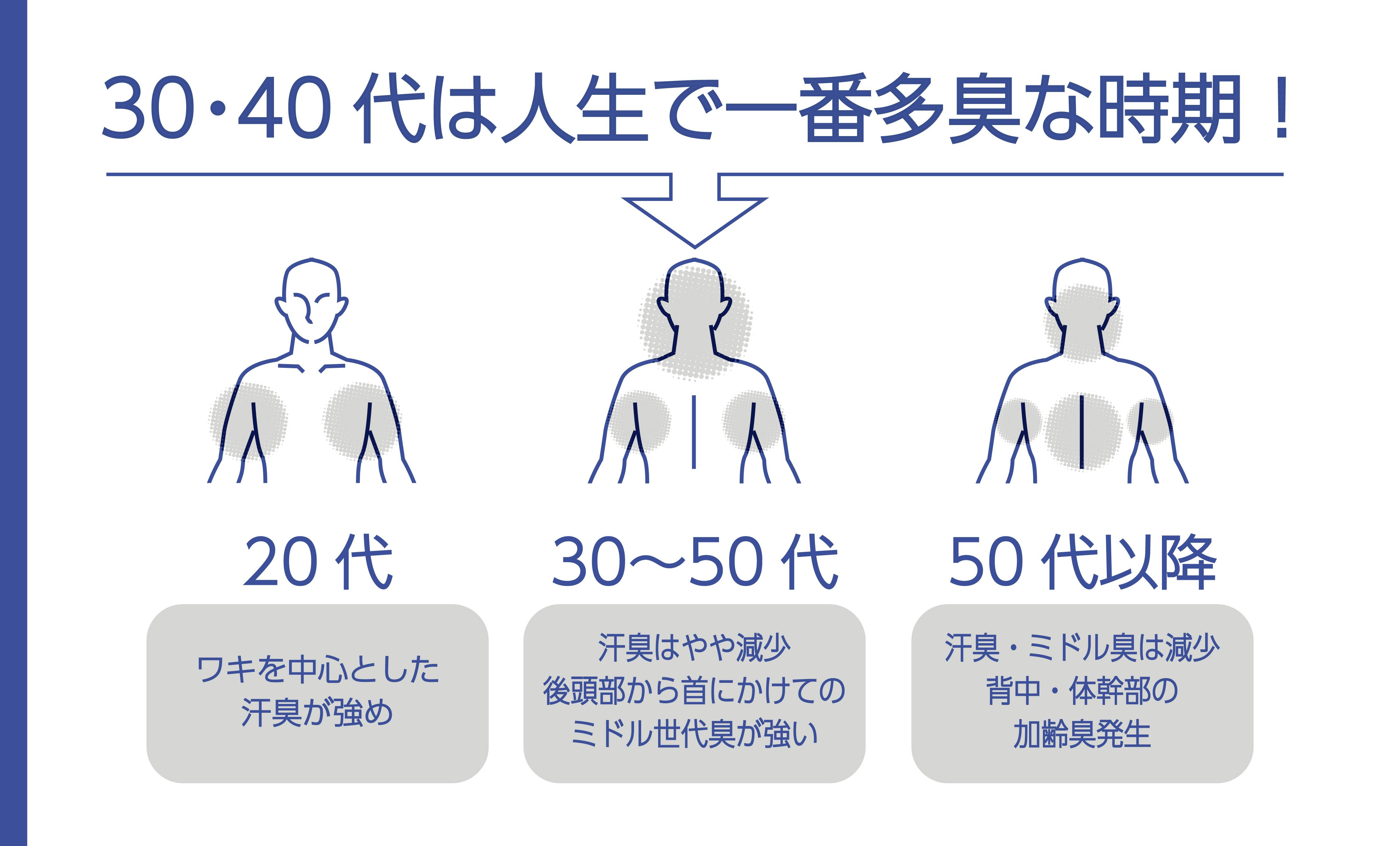 実はそのニオイは加齢によるニオイではなく、30~40代の比較的若い世代に発生しやすい