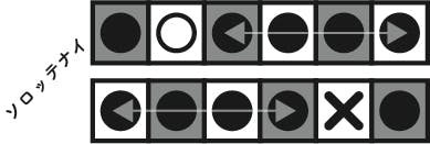 列の途中に相手の石や「×」があれば、そろっていることにはなりません。