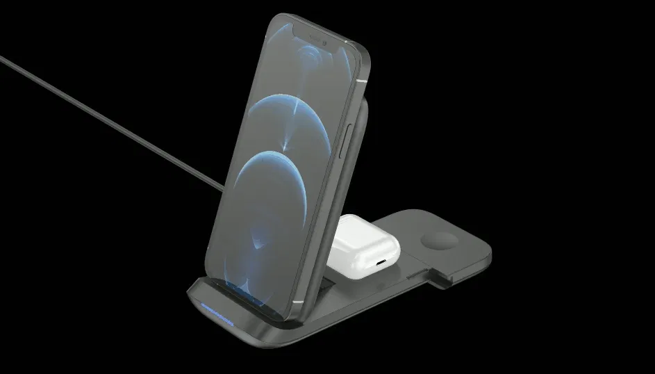 ① スマートフォン・Apple Watch・AirPods同時ワイヤレス充電可能!