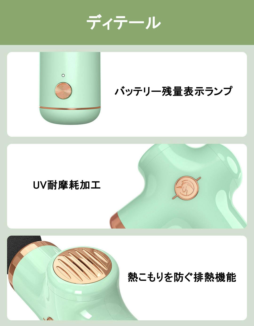 また、充電ポートには一般的に使われることの多いType-cを採用し、電池の残量が少ないときでも、いつでもどこでもモバイル電源を取り出して筋膜リリースマシンを再開できます。