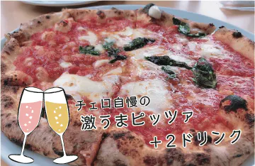 チェロ自慢の激うまピッツァ 一枚をご提供いたします。