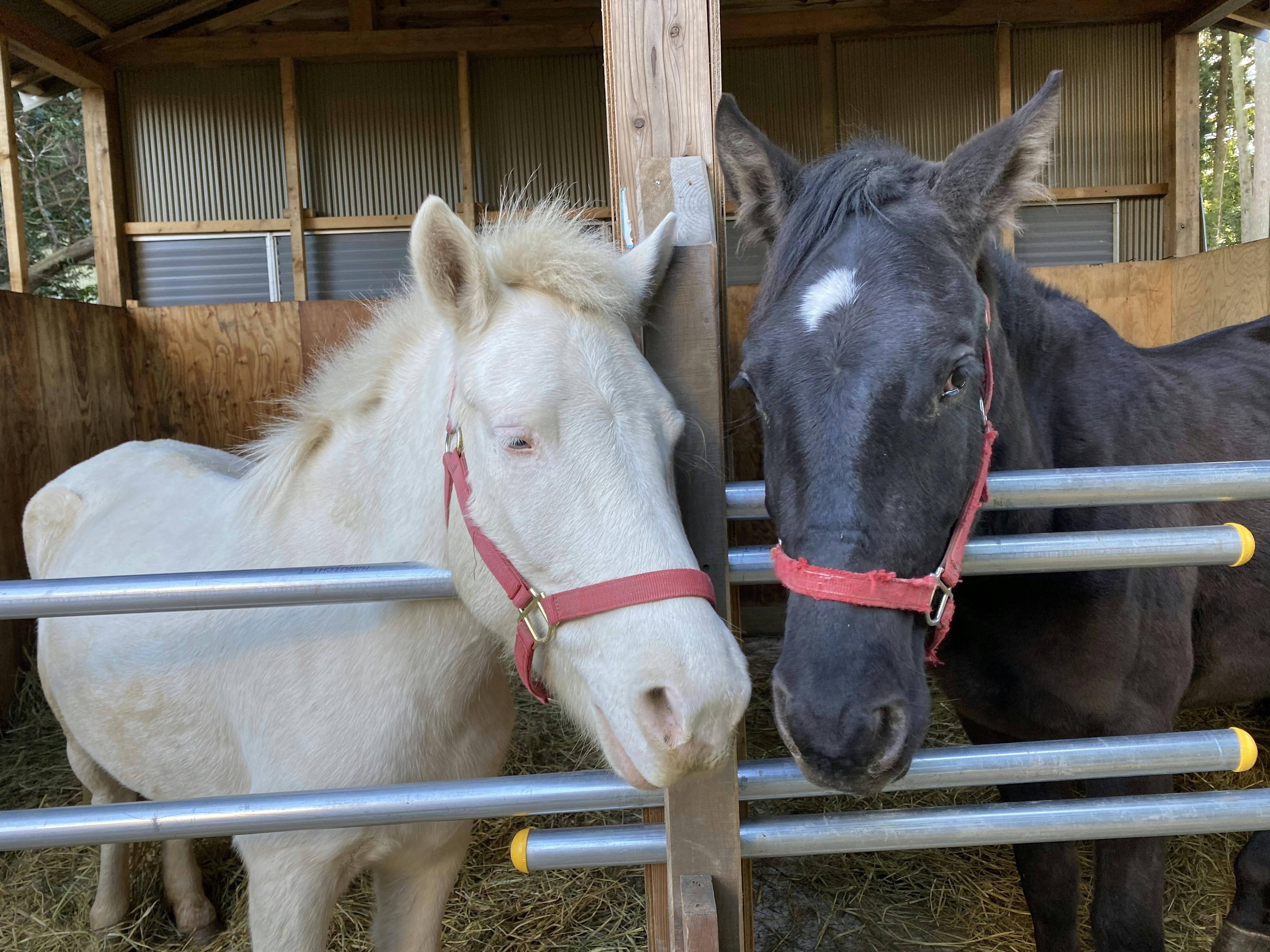 2021/11/29 16:48皆さんにご支援いただき馬たちを迎えることができてから一カ月が過ぎました。馬たちが到着する直前に飼育担当者が引き継ぎも無く突然姿を消してしまうというハプニングもありましたが、幸いにも新たな協力者を得ることができ、大きな混乱も無く、馬たちには不自由な思いをさせることなく新しい暮らしを送ってもらっています。現在は、元騎手の田村正光さんに指導をいただきながら、スタッフ皆で馬たちのお世話をしています。田村さんからは、日々多くの事を学ばせてもらっています。馬たちの飼育を始めて初めて気づく事も多々ありました。その一つが、寝わらとして大量の藁が必要な事です。それによってアサザ基金の水源地再生事業から出てくる大量の藁が有効活用できる事にもなりました。馬たちは、毎日無農薬の藁をたっぷりと厩に敷いてもらっています。また、使用後の藁を使った堆肥によってアサザの田畑での有機栽培とも繋がりました。飼料も、地元の企業や農家に協力してもらい広大な草原で十分な量の採草をさせてもらっています。休日には、親子連れが馬たちを見に来てくれるなど、少しずつ地域にも変化が見えて来ました。アサザのスタッフが馬たちの事をよく理解し、十分な体制を組む事ができたら、より多くの方たちに馬たちと触れ合ってもらうようにしたいと思います。このような状況ではありますが、ご支援いただいた皆さんには、機会ありましたら、ぜひ馬たちを見に来ていただければと思っています。その際は、ご連絡下さい。いま、新しいスタッフの募集もしていますので、皆さまからご紹介いただける方がいましたら、よろしくお願いします! もっと見る