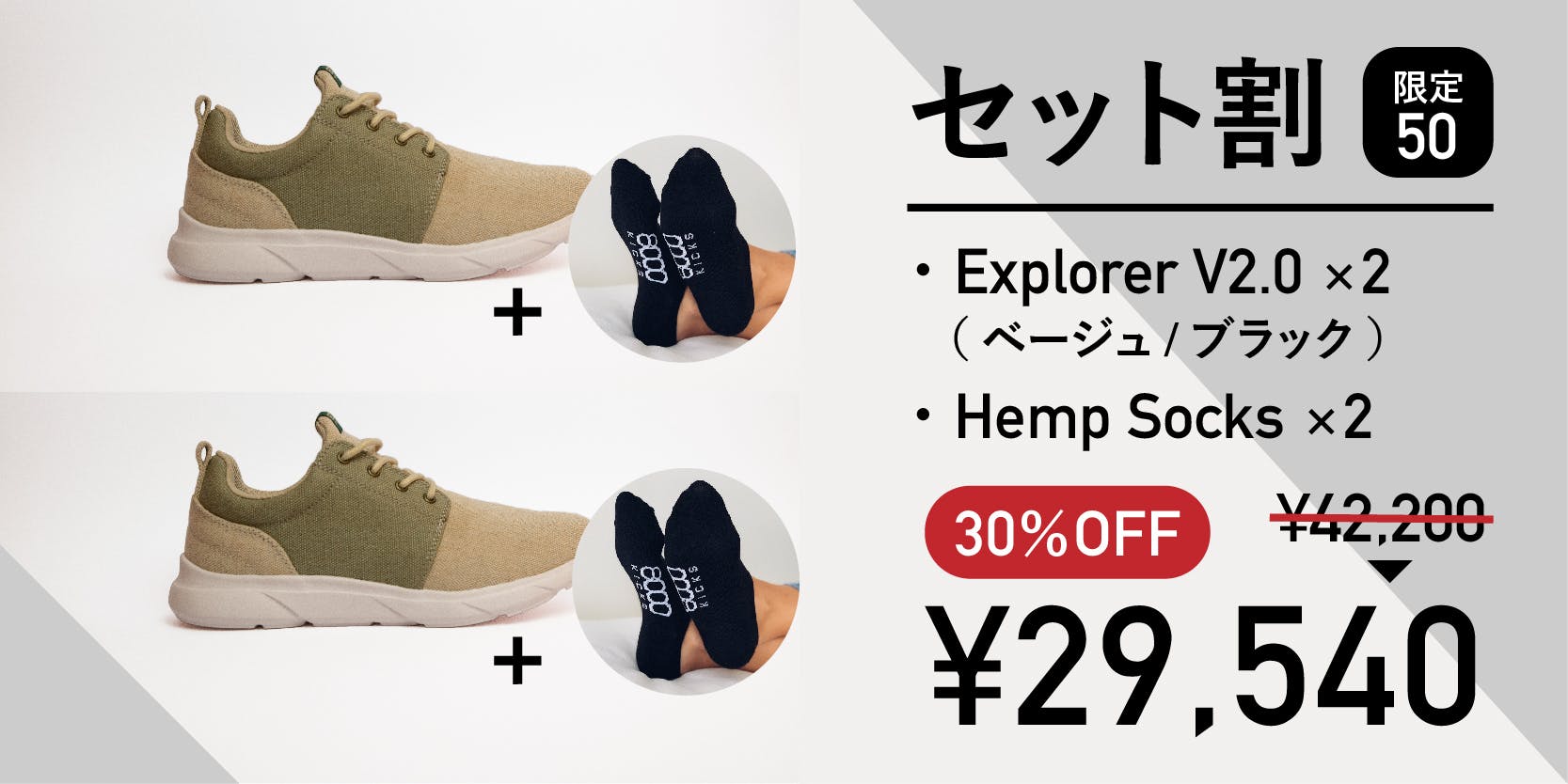 「Explorer V2.0」は、ヘンプ繊維(麻)の持つ機能を生かして作られた天然素材スニーカー。