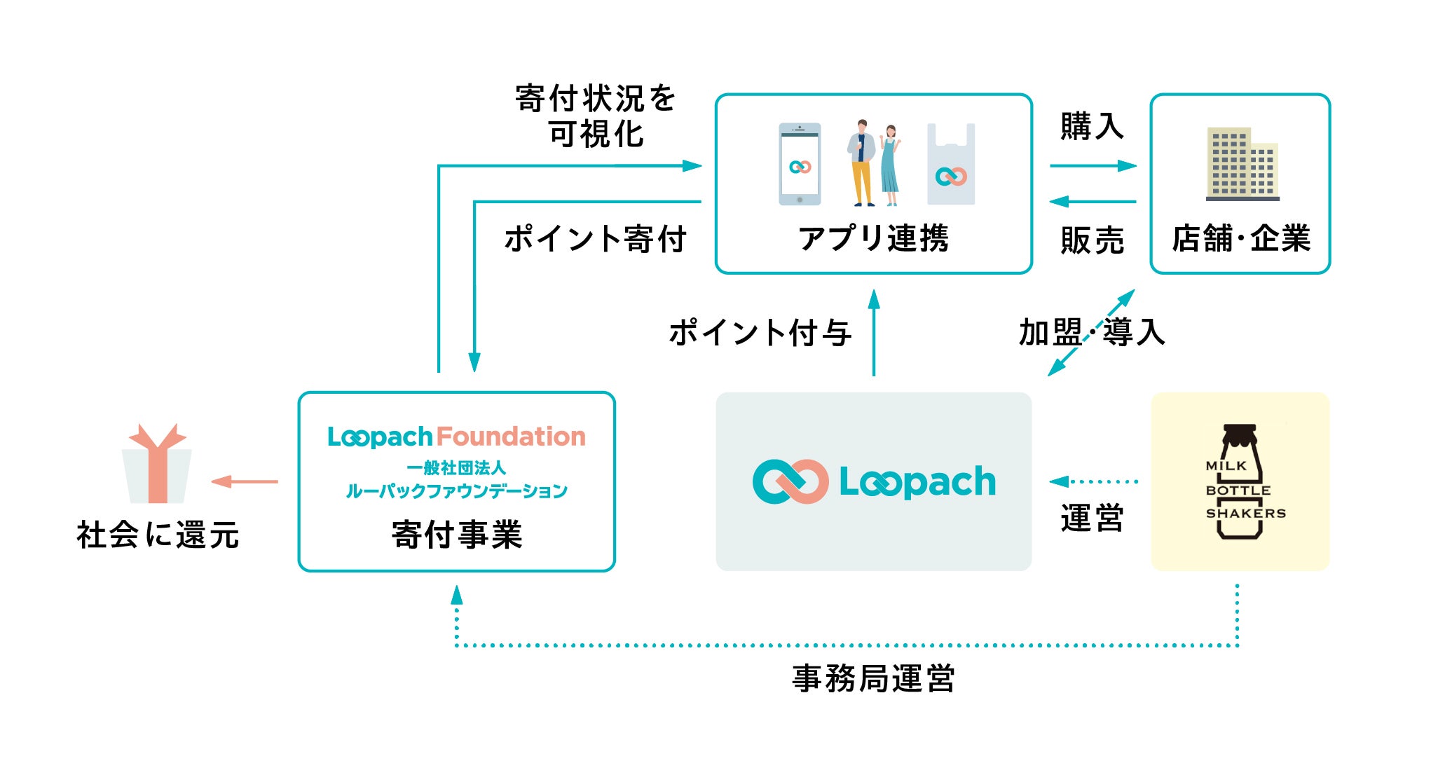 寄付事業は、一般社団法人Loopach Foundation(2021年7月15日設立)で運営します。