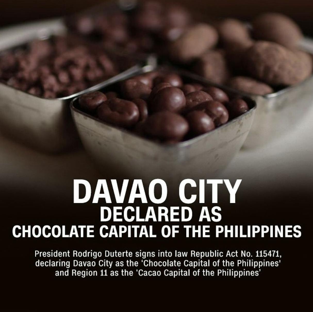 2021/05/29 21:552021年5月27日にフィリピンの現大統領ロドリゴ・ドゥテルテがダバオ島をフィリピンのチョコレートまたはカカオ豆の生産の中心地として公式に命名しました。フィリピン国内最大のカカオ生産地としての地位と、フィリピンを世界的に有名にし米国、日本、ヨーロッパのチョコレートメーカーに求められる重要な品質を認められダバオ市は5月27日に正式にフィリピンのチョコレートの中心として命名されました。 もっと見る