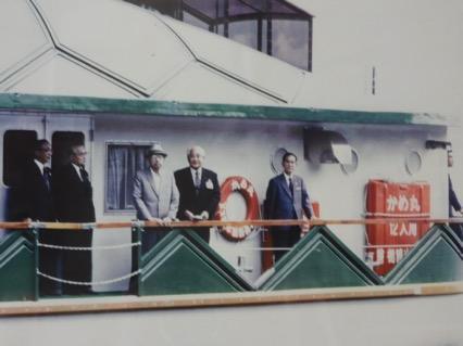 昭和59年、昭和天皇・皇后両陛下が「かめ丸」に乗船されたときのようす。