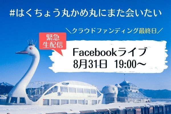 2021/08/31 17:14ラストスパートに向けて本日19時よりFacebook、Instagramにて緊急生配信いたします!各SNSアカウントをお持ちの方はぜひご視聴ください!発起人である渡部英一のはくちょう丸・かめ丸再運行にかける想いや今後の展望についてもお話ししたいと思います。日時:8月31日(火)19:00 ~ 終了時刻未定配信場所:Facebook、InstagramFacebookhttps://www.facebook.com/ikankousenInstagramhttps://www.instagram.com/ikankousen/※電話・FAX・直接現地でのご支援を考えている方は下記までお問い合わせください。【問い合わせ先】株式会社アウレ担当:遠藤、金森TEL:050-5436-3265 もっと見る