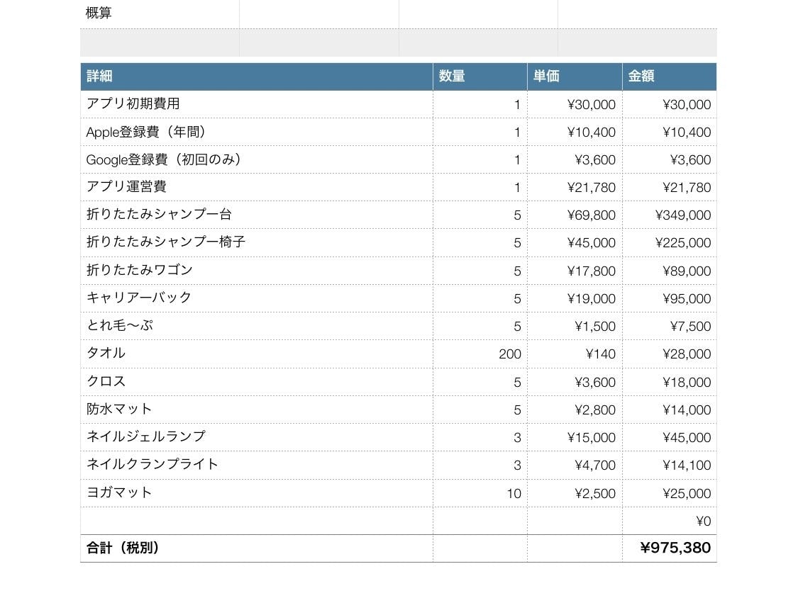このプロジェクトを始めるための概算に関しては以下になります。