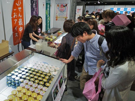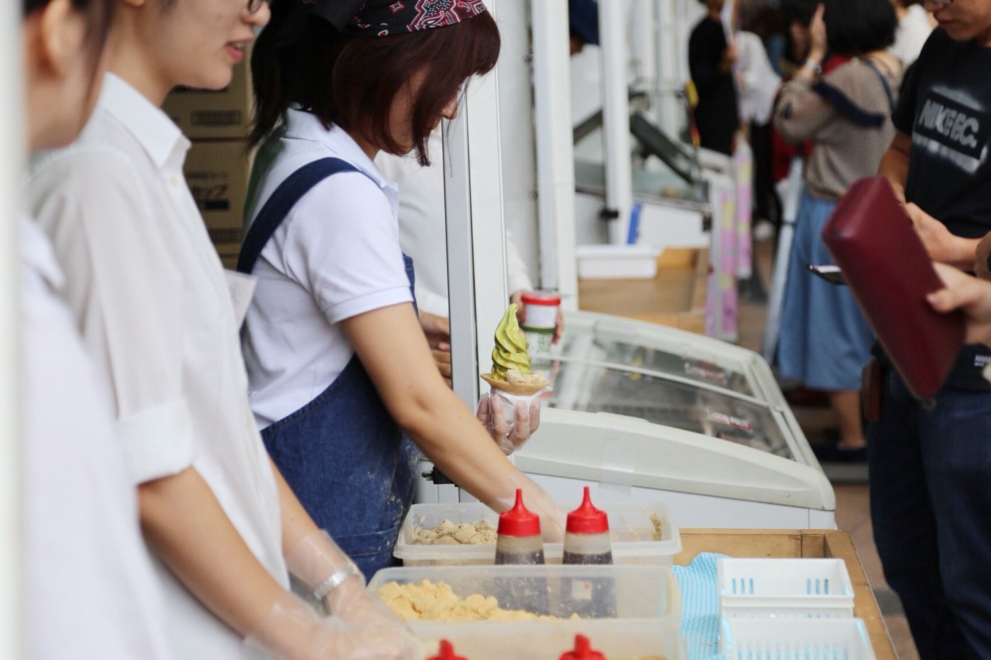 イベントでは、全国各地から厳選したご当地アイスクリームやソフトクリーム、ジェラート、かき氷等の実演店舗やズラリと並ぶほか、お持ち帰り用のカップアイス等もお土産用に販売しています。アイスクリームは年齢を問わないためイベントには、友達やカップル、家族はもちろんのこと、お1人様で参加されるかたも多く見られます。働いているスタッフの皆さんも、地域のアイスクリーム好きの人たちが集まり運営の協力をしてくれます。