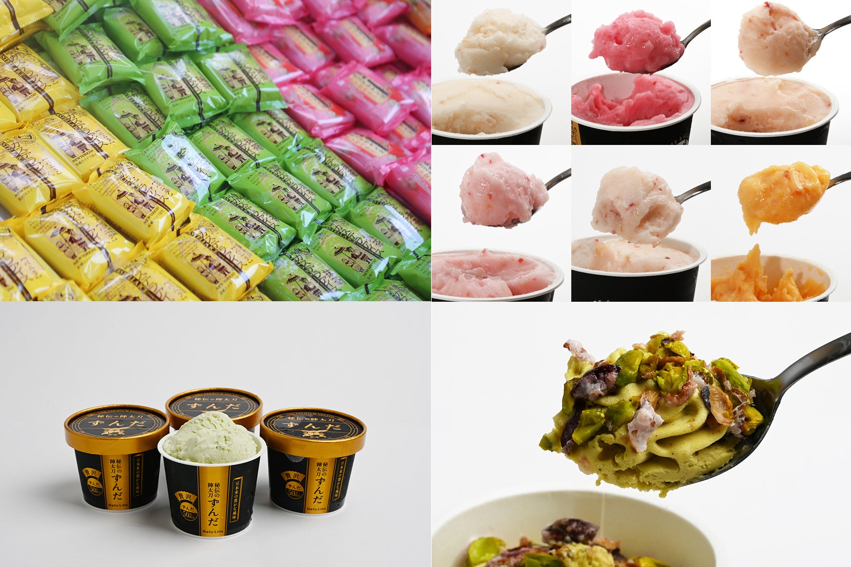 チョコ南部アイス(120ml)|秘伝の陣太刀ずんだアイス(100ml)|雪文 コクミルク(85ml)|桃のジェラート 白鳳(110ml)|ぶどうのジェラート あじろん(110ml) |抹茶パフェバー もんぶらん(95ml)|濃厚バナナジェラート(90ml)|苺シャーベット(90ml)|島ざらめ 塩キャラメル(100ml)|黒糖焼酎に漬け込んだレーズンアイス(100ml) |丹波篠山近又 黒豆&きなこ(100ml)|アイスキャンディー チョコチップ&クッキークランチ(80ml)|アイスキャンディー ハニーレモンピール(80ml)|ラ・レトリなかしべつ フローズンヨーグルト(80ml)|ババヘラ盛りカップ(100ml)|辻利茶舗 濃茶(90ml)|みもな いちごアイス&ホワイトチョコ(90ml) |クルスカステラアイス(55ml)|ヤナギムラのフローズンしろくま ブランちゃん(約350ml)|魅惑のドルチェバー ショコラオランジュ(90ml)
