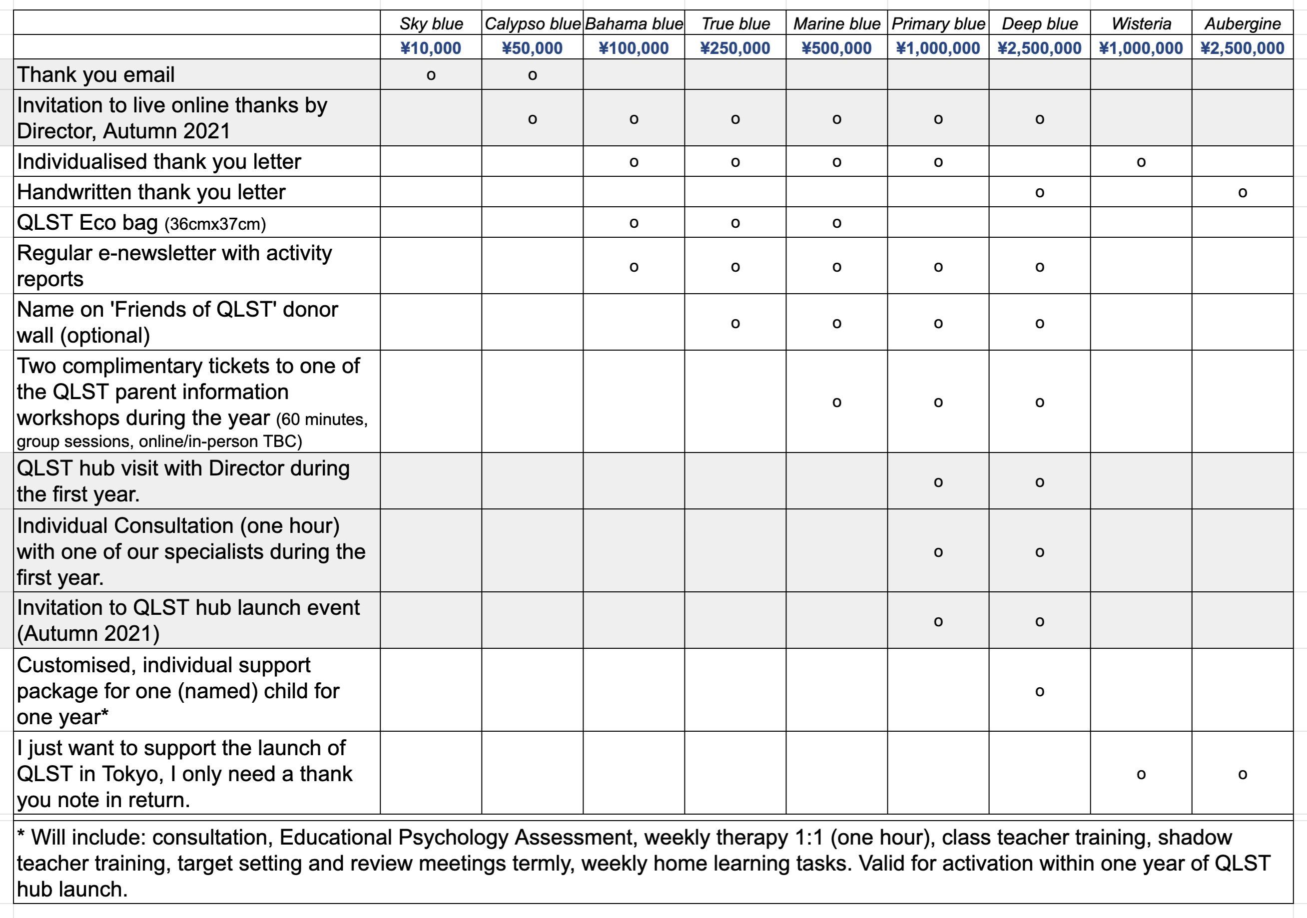 QLSTは学校と協力して、特定の学習ニーズを持つ子供たちがスムーズに入学できるようにサポートとトレーニングをご提案します。私たちは、学校と協力し、保護者の皆さんは、お子さんのためのサポートパッケージを購入できます。
