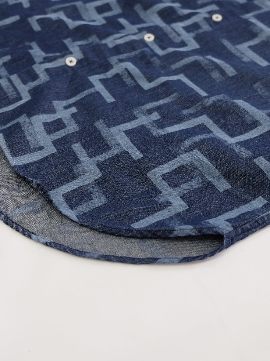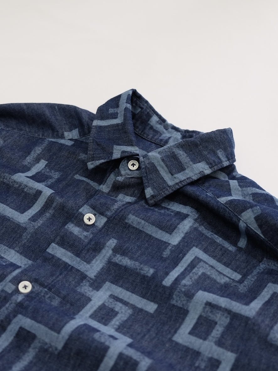 サスティナブルへの強い意識を持ったカメレオンチームと作り上げたのは、MADE IN JAPANのクオリティにこだわった、オリジナルプリントのデニムシャツです。