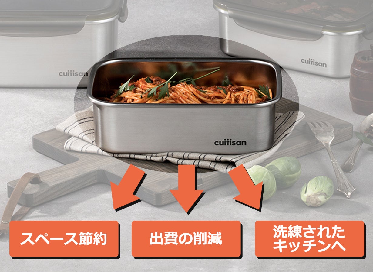 Cuitisanは、革命的なステンレス技術でその問題点をクリアし、さらにスタイリッシュなデザインで、単なる保存容器を洗練された調理容器に進化させました!!