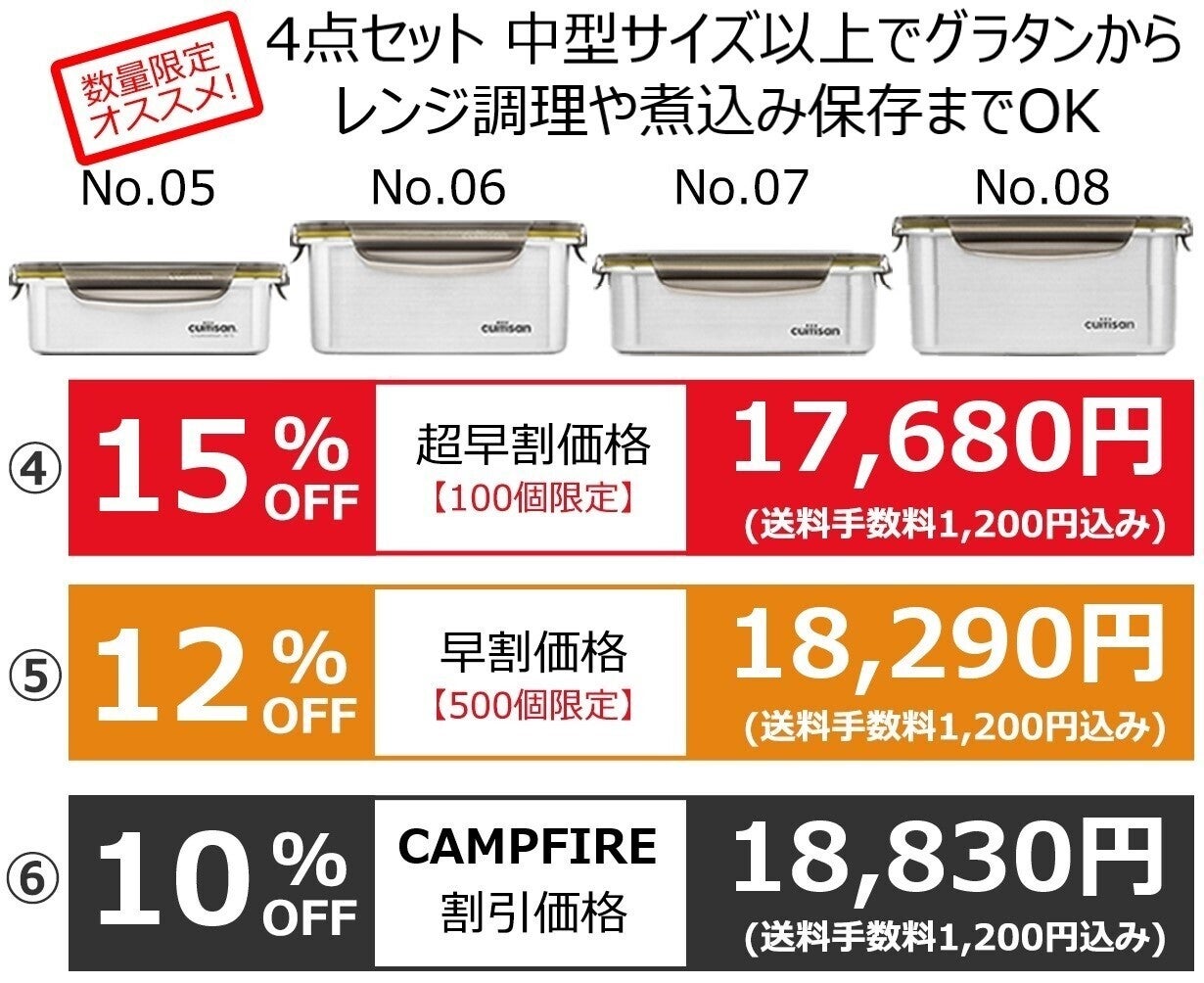 4点 浅型2+深型2セット(計5.2L) No.5~No.8
