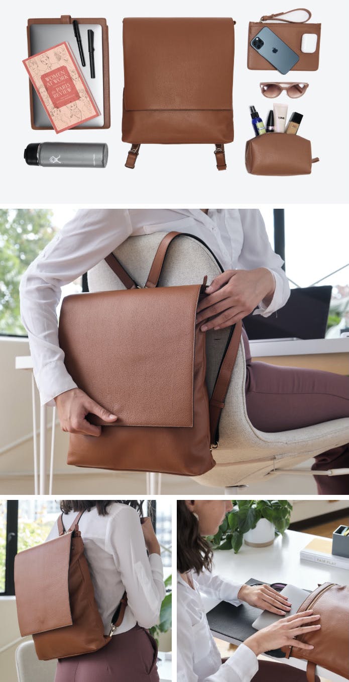 ラップトップ、携帯電話、書類、ノート、化粧品、ウォーターボトルなどすっきりと収納できます。