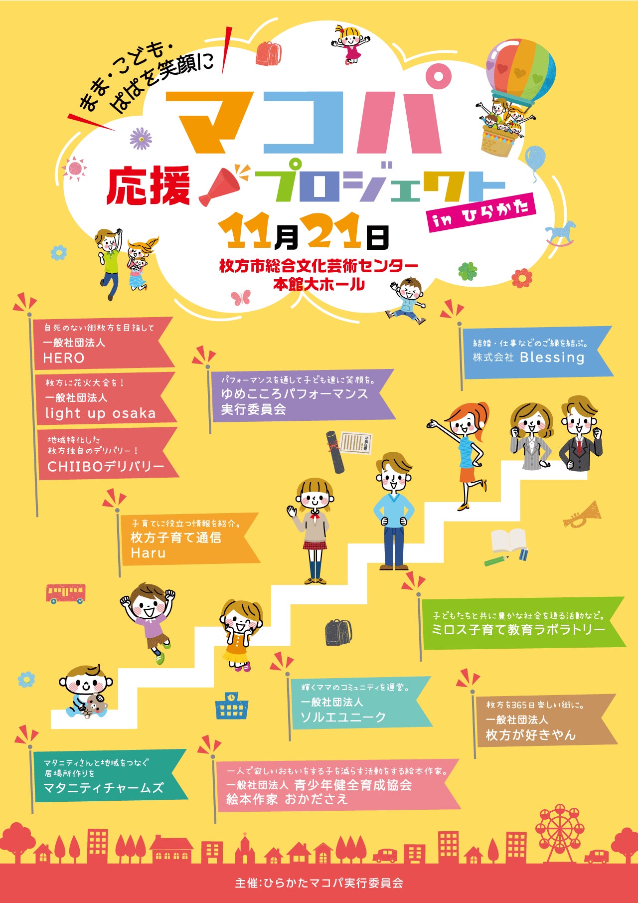 今回、ママ・子ども・パパ「マコパ」を応援するために9つの団体がタッグを組んでイベントを盛り上げます。