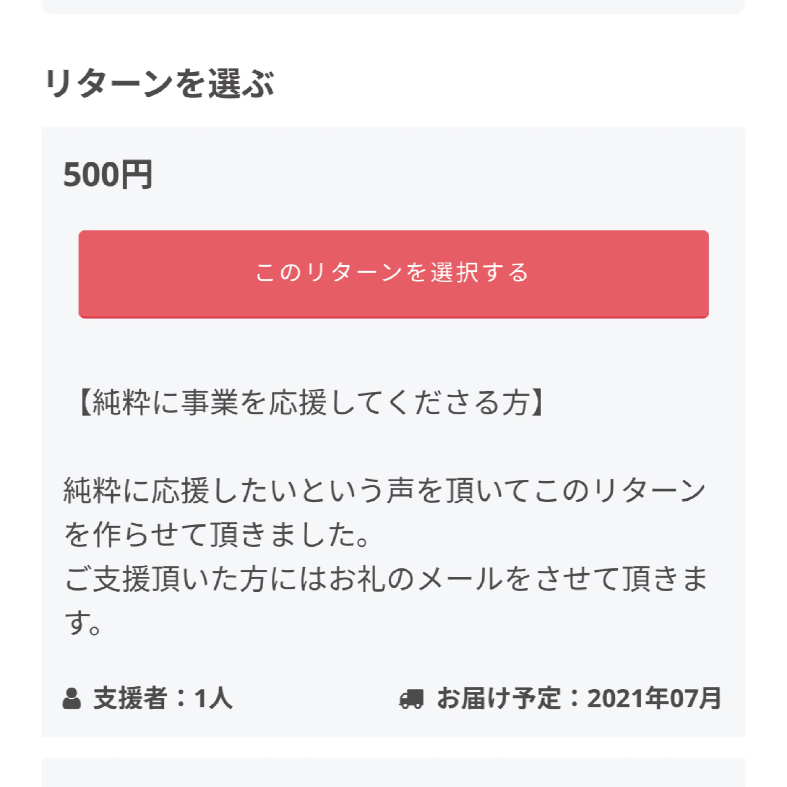 純粋に応援したいという声を頂いてこのリターンを作らせて頂きました。