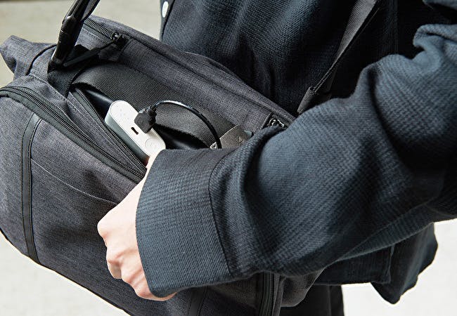 4.バッグの内部には、モバイルバッテリーを装着できるUSBケーブルを内蔵