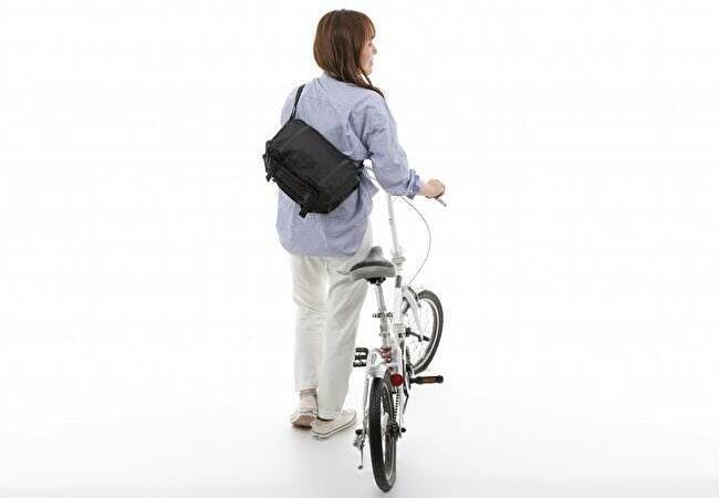 肩から斜めに掛けるバッグです。自転車での通勤通学にオススメ!小雨でも弾く撥水コーティング素材です。