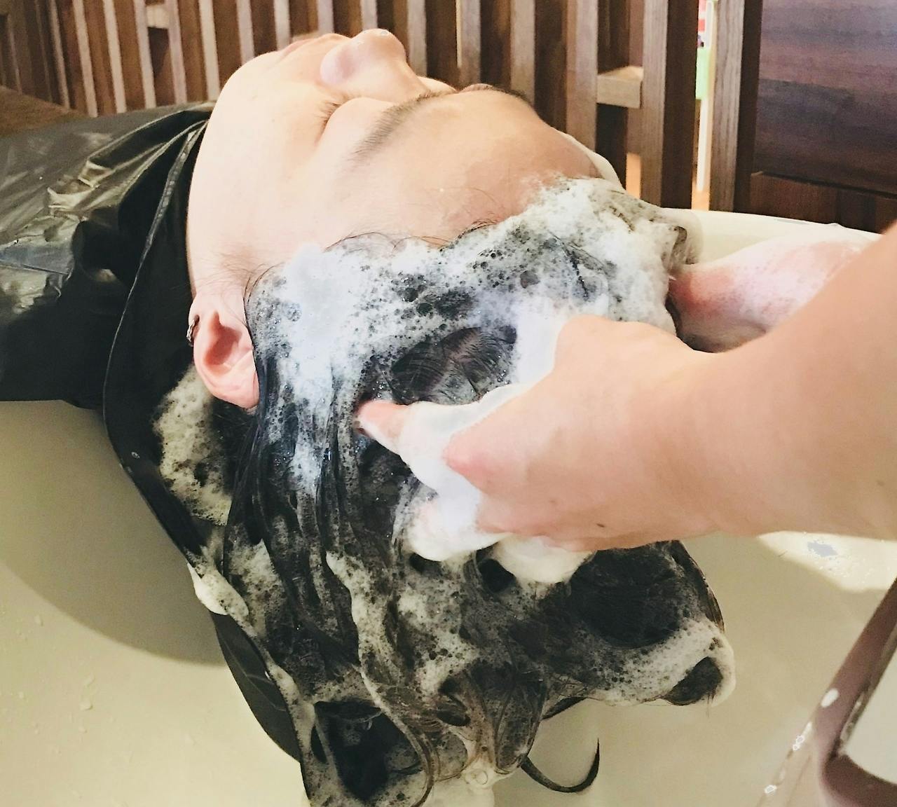 泡がもこもこの炭酸シャンプーを使ったヘッドスパです。