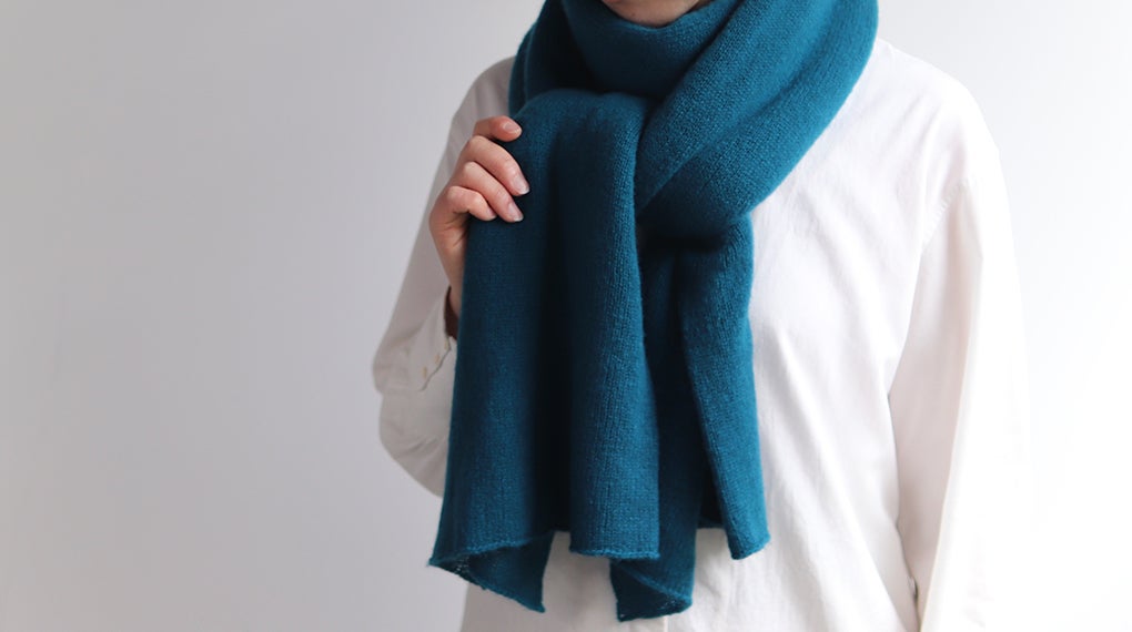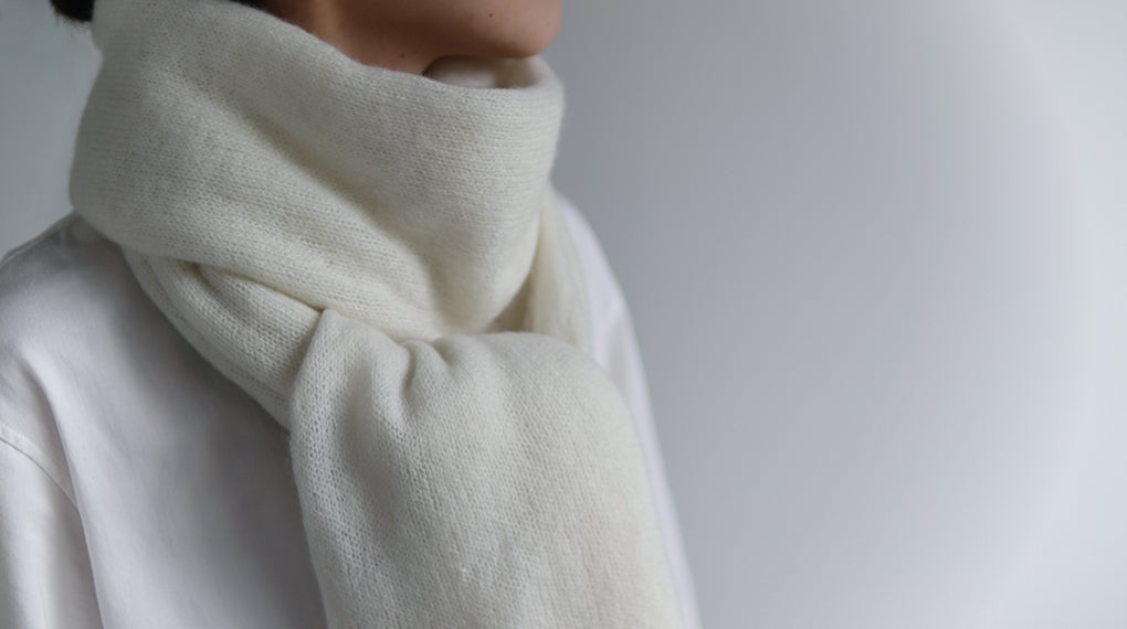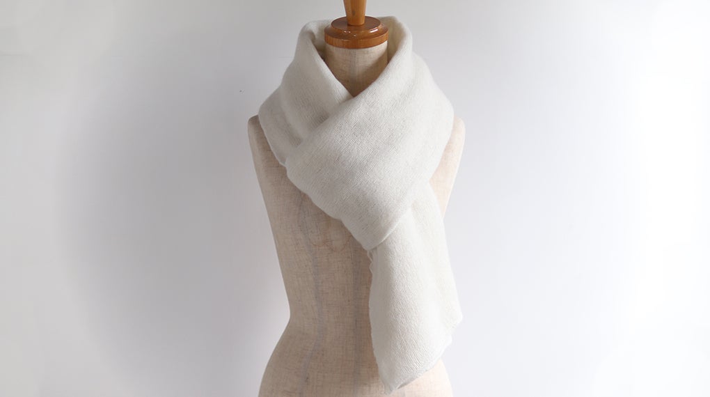 上質なホワイトカシミヤ(100%)を使用しています。カラーは、今回のクラウドファンディング限定色「ブルー」を含む、合計10色をご用意しました。